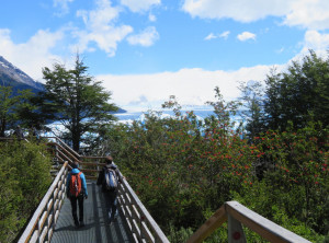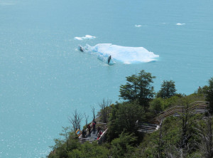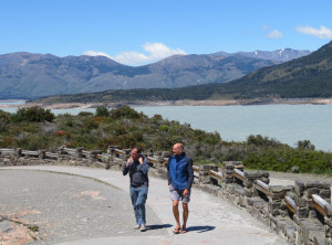 Es waren viele Touristen unterwegs, einige wie wir zu Fuß, andere auf dem Boot im See. Ganz Mutige klettern für 150 Euro im ewigen Eis umher. Wit verbrachten mehr als drei Stunden am Rand des Eises, spazierten zu den einzelnen Aussichtsterassen und staunten nicht schlecht, wenn wieder etwas Schnee oder Eis laut krachend in den See viel. Es war etwas windig aber nicht zu kalt. An unserer Seite des Ufers standen Bäume mit frischen grünen Blättern nicht weit entfernt vom Schnee und Eis. Wir bleiben fast bis 18 Uhr und fuhren gemeinsam die 20 km zum Eingang des Nationalparks zurück. Hier trennten sich unsere Wege. Gutavo wollte zurück in die Stadt und Markus und ich wollten die Nacht am Rande des Nationalparks verbringen.