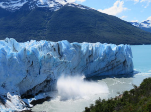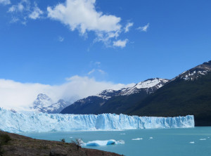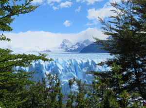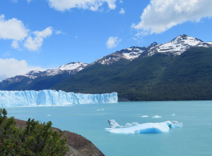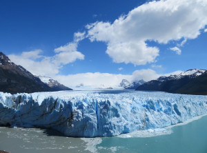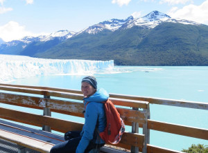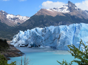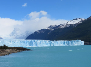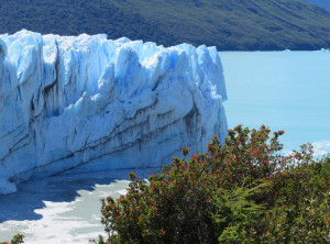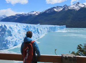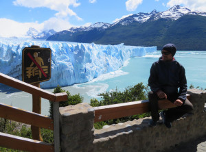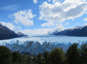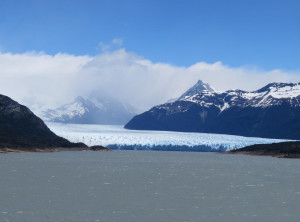 Am Stadtrand nahmen wir noch einen Anhalter mit. Gustavo aus Uruguay hatte an diesem Tag Geburtstag und wollte den Bus in den 50 km entfernten Park sparen. Für uns eine nette Abwechslung, wir erfuhren, dass er schon seit nunmehr 8 Jahren unterwegs ist und die meiste Zeit in Europa gereist ist. Er kennt Europa auf jeden Fall besser als wir. Wir verbrachten den Tag zu dritt und sahen uns das beeindruckende Spektakel des 50 bis 70 Meter hohen Gletschers an. Kilometerweit zieht sich diese Eiswand ins Land und obwohl jeden Tag am vorderen Ende Eis abbricht und große Eisberge in den See entlässt, schrumpft die Masse des Eises nicht, sie wandert.