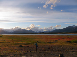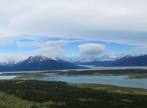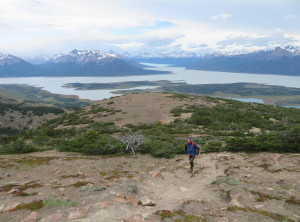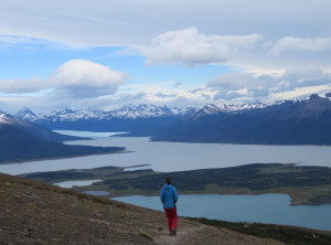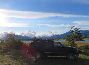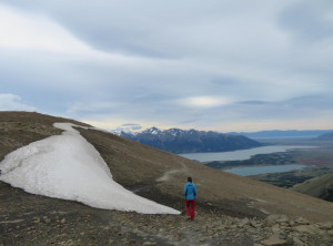 Wir verabschiedeten uns und das allererste Auto sammelte unseren Freund ein und nahm ihn mit zurück, sehr gut. Wir fuhren noch 25 km auf einer Schotterpiste bis zu unserem Campingplatz. Wir standen direkt an einem großen See, etwas windig aber wunderschön. Am Morgen machten wir eine Wanderung, die uns steil aufwärts auf den Cerro Cristal führte. Mit jedem Meter hoch wurde es kälter und windiger. Wir hatten eine schöne Aussicht, diesmal von der anderen Seite auf den Gletscher und die umliegenden Berge. Nach 800 Metern aufwärts entschieden wir uns umzukehren. Wir waren nicht warm genug angezogen.