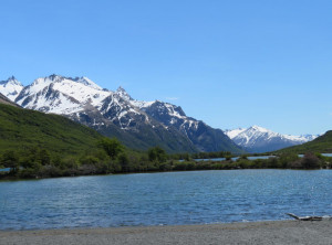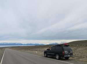 Als wir uns El Chaltén näherten, offenbarte sich eine grandiose Landschaft. Mehrere Kilometer links von uns lag ein riesiger See, auf dem einige Eisberge trieben, die von einem Gletscher stammen, der in das Gewässer mündet. Vor uns sahen wir schon aus fast 100 Kilometer Entfernung die schneebedeckten Berge hinter El Chaltén.