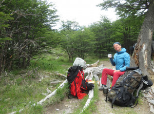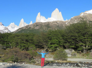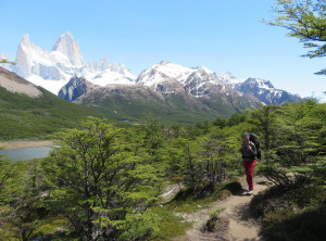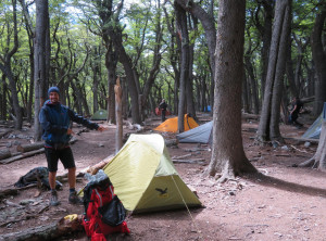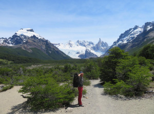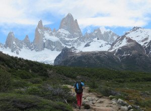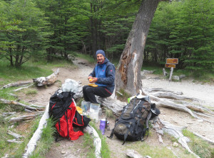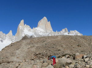 Am nächsten Tag starteten wir nach einem leckeren Frühstück mit Pfannkuchen mittags unsere Wanderung. Es ging bei immer schöner werdenden Wetter 10 Kilometer und 500 Meter bergauf zu einem kostenlosen Campingplatz am Fuß des Fitz Roy. Das ist mit über 3.400 Metern Höhe der markante Gipfel des höchsten Berges in El Chaltén.