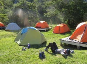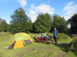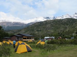 Am Morgen erwachten wir bei Sonnenschein mit einem super Bergblick, wir trällerten ein Geburtstagsständchen für meine Schwester Kristin, welches sie erst Tage später erreichen würde, denn Empfang hatte man hier nicht. An diesem Tag hatten wir eine recht kurze Etappe vor uns. Wir wanderten durch einen märchenhaften Wald, überquerten zahlreiche Flüsse und passierten einen Gletscher. Unweit des ewigen Eises lag auch schon der nächste Zeltplatz Los Perros, hier campten wir im Wald. Dies sollte unsere kälteste und kürzeste Nacht werden. Ein schönes Holzhaus bildete den Mittelpunkt des Platzes, hier wurde gekocht und gequatscht. Es gab auch Duschen, allerdings mit kaltem Wasser- wir verzichteten an diesem Tag aufs Duschen. Schon bald nach dem Abendessen kuschelten wir uns ins Zelt. Am nächsten Tag wollten wir um 7 Uhr aufbrechen, es lag die Passüberquerung und damit die anspruchsvollste Wanderung der Runde vor uns. Trotz Kälte und etwas Regen schliefen wir gut.