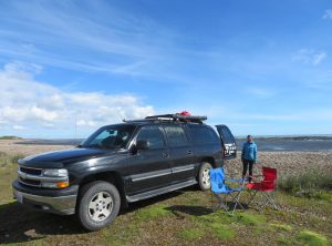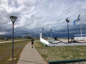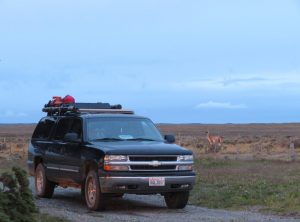 Etwa 50 km später überquerten wir die Grenze von Chile nach Argentinien. Wieder mussten wir aufpassen, keine frischen Lebensmittel wir Obst, Gemüse, Käse und Eier an Bord zu haben. Diesmal wurden wir nicht gefilzt und fuhren gut gelaunt schon nach etwa 15 min auf argentinischem Boden weiter. In der nächsten größeren Stadt, Rio Grande machten wir Station. Wir stockten unsere Lebensmittelvorrate auf und gönnten Jeff mal eine Dusche. Wir joggten eine Runde an der Atlantikküste und sahen uns etwas um. An der Tankstelle füllten wir unseren Tank und genehmigten uns eine Dusche. Wir fuhren noch ein paar Kilometer raus aus der Stadt und stellten uns an einen schönen Platz am Wasser. Ein Expeditionsfahrzeug war schon da, es handelte sich um ein umgebauten österreichisches Militär-LKW mit Hildesheimer Kennzeichen. Am nächsten Tag unterhielten wir uns dem Rentnerpärchen, die mit diesem Fahrzeug die Welt erkunden. Wir frühstückten in der Sonne und setzten unsere Fahrt in Richtung Süden fort.