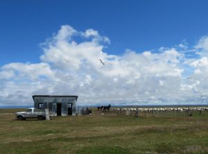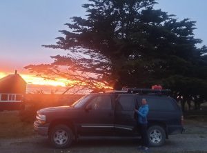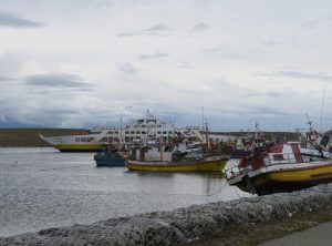 Eine Stunde früher als gedacht legten wir im kleinen Städtchen Porvenir auf Feuerland an. Mein erstes Gefühl war – zuhause ankommen. Der Hafen mit seinen kleinen Fischerbooten erinnerte mich an Carolinensiel und der begrünte Hügel ging fast als Deich durch. Wir fuhren bis ins Stadtzentrum und entschieden uns dann bald noch an diesem Abend an der Küste entlang unserem nächsten Ziel, einer Pinguinkolonie entgegen zu fahren. Es ging auf einer Schotterpiste langsam vorwärts. Wir wussten, dass hier Delfine leben und ich hielt Ausschau. Tatsächlich erspähten wir einige dieser Tiere, die immer wieder aus dem Wasser sprangen. Wir waren definitiv nicht in Ostfriesland.