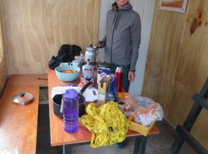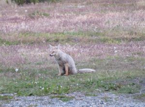 Wir suchten uns einen Platz zum Übernachten, doch so richtig wollte sich keiner finden. Beim dritten Anlauf hatten wir Glück. Wir blieben geschützt von ein paar Bäumen neben einem Refugio, welches besonders Radfahrern Schutz bieten soll stehen. Das Refugio war ein nagelneues kleines Holzhaus mit Tisch und Bank, einem Ofen und einem Hochbett. Am Platz trafen wir zwei Graufüchse, die auf Nahrung hofften. Außerdem waren in dieser Gegend viele Guanakos unterwegs. Wir machten uns einen Tee und betrachteten die untergehende Sonne. Die Sommertage in Feuerland sind lang. Die Sonne ging nach 22 Uhr unter und schon vor 5 Uhr wieder auf.