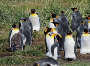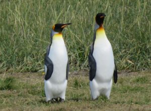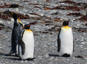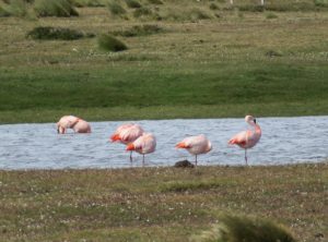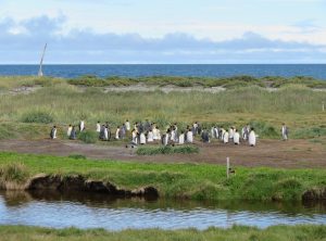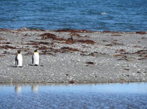 In der Nacht regnete es heftig, davon bekamen wir in unserem gemütlichen Auto jedoch kaum etwas mit. Vorbei an einem See, in dem Flamingos standen, ging es zu den Königspinguinen. Es handelt sich um die zweitgrößte Pinguinart der Welt. Die lustigen Kerlchen sind bis 110 cm groß und im Gefieder tragen sie einen schönen goldgelben Ring am Hals. Hier in Pingüino Rey Leben etwa 90 Pinguine, die aus der Ferne betrachtet werden können. Am Eingang des Parks erfuhren wir, dass die Kolonie schrumpft. Die eingeschleppten Feinde der Graufuchs und der Marder, die einst hier ausgewildert und wegen ihres Fells gejagt wurden, fressen die Eier der Pinguine und machen es nahezu unmöglich, dass die Tiere sich vermehren. Ein Pinguinpaar benötigt zur Aufzucht eines Jungtieres 16 Monate und nur in jedem zweiten Jahr legt eine Pinguindame neue Eier. An der Aufzucht sind beide Elternteile gleichermaßen beteiligt. Stößt einem Elternteil etwas zu, kann der Nachwuchs nicht durchgebracht werden. Wir bestaunten eine Weile die stolzen Tiere.
