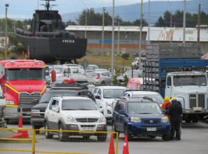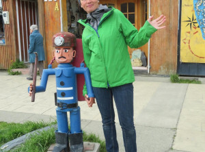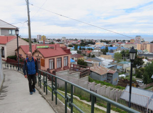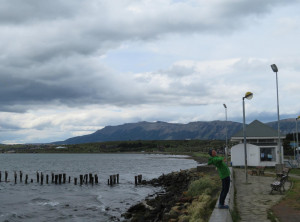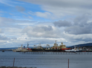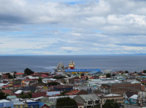 Wir übernachteten neben zwei anderen Campern direkt am Meer an der Magellanstraße. Hier werden wohl des öfteren Delfine gesichtet, wir sahen aber leider keine. Am nächsten Morgen kauften wir uns als erstes Tickets für die Nachmittagsfähre nach Porvenir auf der Insel Feuerland. Da wir erst um 15 Uhr am Hafen parat stehen mussten, hatten wir noch ein paar Stunden Zeit, um uns in Punta Arenas umzuschauen. Wir fuhren zunächst auf einen Parkplatz am Meer und frühstückten ausgiebig. Danach schlenderten wir über den Hauptplatz zu einem Aussichtspunkt, von wo wir einen schönen Blick über das Meer und die davorliegende Stadt hatten. Eine besondere Schönheit ist Punta Arenas nicht und darum waren wir auch nicht traurig, dass wir hier nicht langer blieben. Auf dem Weg zum Auto fanden wir in einer Bäckerei noch ein leckeres Vollkornbrot In einer deutschen Bäckerei, besuchten noch den kleinen Fischmarkt, bevor wir aus der Stadt raus bis zum Fähranleger fuhren.