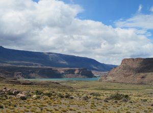 Am Vormittag des Heiligabends ging es für uns wieder zurück nach Chile. Wir wollten noch das Südende der berühmten Landstraße Carretera Austral in Cochrane erreichen. Dazu ging es in Argentinien zunächst 200 Kilometer auf einer uns bekannten Strecke. Diesen mit Schlaglöchern übersäten Abschnitt der Ruta 40 kannten wir schon von unserer Fahrt in den Süden vor ein paar Wochen. Unterwegs sahen wir einen Andenstrauß mit ganz vielen Küken, auch diese flitzen schon im hohen Tempo durch die Pampa, dass es uns nicht gelang, ein vernünftiges Foto zu machen. Danach ging es 90 Kilometer über eine teilweise schlechte Schotterpiste aber durch eine sehr schöne und immer bergiger werdende Landschaft zur Grenze.