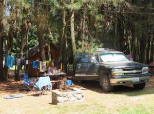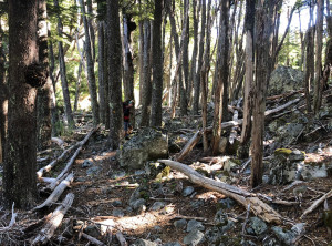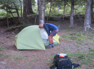 Als wir am Abend unser Ziel, den Campingplatz erreichten, stellten wir fest, dass dieser geschlossen war. Trotzdem bauten wir unser Zelt neben einem anderen auf, an dem niemand war. Wir erkundigten etwas die Gegend und sahen, dass überall wilde Walderdbeeren wuchsen! Lecker, wir pflückten zwei Handvoll für unser Frühstück. Mit Einbruch der Dunkelheit gingen wir wieder zurück zum Zelt. An dem anderen Zelt war immer noch niemand. Merkwürdig… Niko vermutete eine aufgedunsene Leiche im Zelt, ich einen Psychopathen mit einer Axt, der nur darauf wartet, dass wir uns schlafen legen. Ich glaube, ich habe zu viele Filme gesehen. Gerade als wir im Zelt lagen, hörten wir draußen Stimmen von Frauen. Ich schaute kurz raus und es stellte sich heraus, dass das Zelt drei quicklebendigen Argentinierinnen gehörte, denen ich noch schnell eine gute Nacht wünschte.