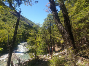 Am nächsten Morgen waren wir leicht angeschlagen und wir suchten uns eine kleine Wanderung zum einem Aussichtspunkt heraus. Es war schwül und heiß und wir zogen in Flipflops und kurzen Sachen los. Der Weg war teilweise aber so steil, dass feste Schuhe wohl doch die bessere Wahl gewesen wären. Aber wenigstens war die Hitze so besser zu ertragen 😉 Am Aussichtspunkt hatten wir an einer Stelle Blick zu einem Felsen, der wie ein Profil eines Gesichts aussah und an einer anderen Stelle konnten wir weit durch ein Teil bis zu schneebedeckten Bergen blicken. Zurück in El Bolsón gönnten wir uns eine Pizza, bevor wir zurück zum Campingplatz gingen.