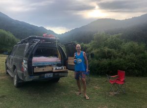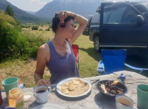 Nachmittags fuhren wir dann zu einem Campingplatz am See, da wir uns nach der Wanderung eine heiße Dusche verdient hatten. Diese wurde hier mit Holz befeuert. Abends kochten wir noch und genossen den Blick über den See und die hohen Berge.