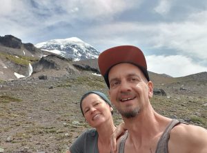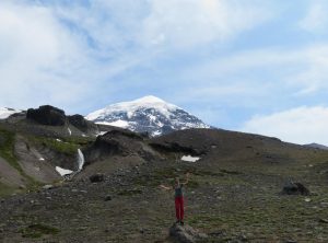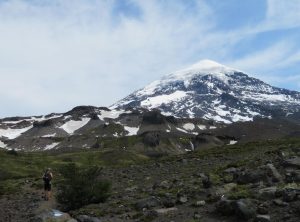 Am nächsten Morgen wanderten wir um kurz nach 7 los. Nach ca. einer Stunde fanden wir einen schönen Platz für unser Frühstück, was wir mitgenommen hatten. Es ging immer weiter leicht bergauf durch einen Wald und von Zeit zu Zeit erblickten wir vor uns den schneebedeckten Berg. Die letzten Stunde zum Aussichtspunkt war etwas steiler, aber insgesamt war der Weg weniger beschwerlich als gedacht, obwohl es auch wieder über 800 Höhenmeter waren. Oben angekommen genossen wir die Aussicht auf den symmetrischen Vulkankegel und machten uns bald wieder an den Abstieg, da hier ein frischer Wind wehte. Dabei trafen wir einige andere Wanderer, aber es war erstaunlich wenig los.