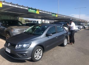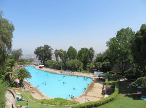 Am nächsten Morgen liefen wir die nächste Einheit unseres Lauftrainings und frühstückten danach leckere Pfannkuchen. Danach spazierten wir ca. fünf Kilometer zu Fuß zu einem Freibad, dass auf einem Hügel im Park Parquemet, dem angeblich größten Park in Lateinamerika, liegt. Dort oben kann man schwimmen und hat dabei einen schönen Blick über die große Stadt. Nach zwei Stunden begaben wir uns schon wieder auf den Rückweg, da wir um 17 Uhr am Flughafen den kleinen Mietwagen für unsere letzte Woche in Chile abholen konnten. Wir holten unser Gepäck in unserer Unterkunft ab und fuhren schwer beladen mit der Metro und dem Bus zum Flughafen. Dort nahmen wir unser kleines Gefährt entgegen und steuerten unser nächstes Ziel an. Der große Jeffrey hätte die Garage für den Kleinwagen sein können.