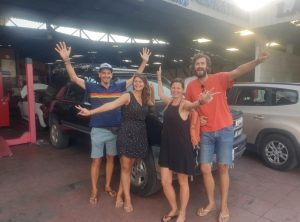 Danach fuhren wir alle zusammen in die Werkstatt, um die Handbremse reparieren zu lassen. Wir kamen dort um viertel vor eins an und es wurde sofort mit der Arbeit begonnen. Plötzlich verschwanden nach und nach alle Mitarbeiter und ich fragte beim Chef nach. Seine Antwort war „Tranquilo“, also Geduld und kurze Zeit später war auch er verschwunden. Wir warteten und warteten in der Hitze auf dem Hof der Werkstatt. Bis 15 Uhr tat sich nichts, man hätte uns auch mal sagen können, dass jetzt 2 Stunden Pause gemacht wird. Aber egal, Hauptsache, Jeffrey wird repariert. Beim Anbringen der neuen Teile stellte der Mechaniker fest, dass eine Schraube abgebrochen war und der Schraubenrest irgendwie herausgeholt werden mußte. Dafür wurde ein Spezialist herangeholt und nach einiger Zeit konnte die neue Handbremse angebracht werden. Perfekt, jetzt sollte es ja schnell gehen. Aber zu früh gefreut…