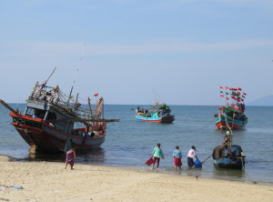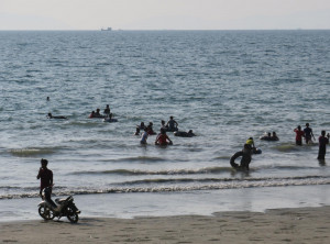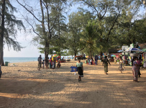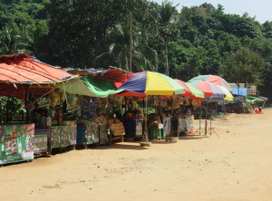 Als nächstes hielten wir in einem Fischerdorf, welches an einem traumhaft schönen Strand liegt. Leider waren der Strand sowie die wenigen Gassen im Dorf ziemlich vermüllt und es stank außerordentlich stark nach Fisch. Wir schauten uns deshalb nur kurz um und fuhren rasch weiter nach Maungmagan Beach. Dieser Strand ist sehr gut von Dawei aus zu erreichen und daher war es hier an einem Samstag etwas geschäftiger.