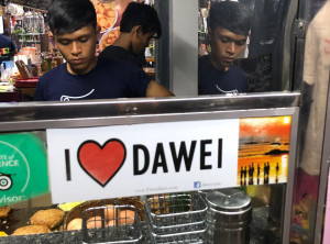 Die Fahrt im modernen voll klimatisiertem lokalen Bus von Myeik nach Dawei dauerte inklusive einer Mittagspause ca. sieben Stunden und wir wurden wegen der Straßenverhältnisse wie auf hoher See durchgeschüttelt. Zum Glück hatten wir Tabletten gegen Reisekrankheit dabei – danke Schalina! Wir erreichten Dawei gegen 16:00 Uhr. Da der Busbahnhof weit außerhalb der Stadt liegt, ließen wir uns an einer Hauptstraße absetzen. Von dort aus konnten wir zu unserem Hotel laufen, in dem wir die nächsten drei Nächte verbrachten. Das Hotel und unser Zimmer waren super, sehr sauber und mit der besten Dusche, die wir bis jetzt auf unserer Reise hatten. Am nächsten Morgen stellten wir fest, dass das Frühstück genauso gut war, wie in den Bewertungen zu diesem Hotel beschrieben war. Es gab Reis mit Gemüse, Nudelsuppe, Reisnudeln, Toast, Marmelade, Eier, verschiedene Kräuter und Gewürze und jede Menge Obst – Papaya, Mango und Wassermelone.