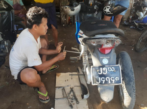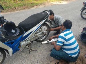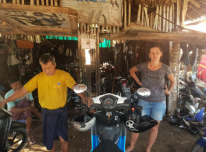 Das Ganze ging leider nur 20 Kilometer gut und wir standen schon bald erneut am Straßenrand. Zum Glück mussten wir auch dieses Mal nicht lange auf Hilfe waren, sehr schnell standen drei Einheimische parat, schraubten an unserem Moped herum und erklärten uns den Weg zur nächsten Werkstatt. Nun mussten wir wieder einige Kilometer zurück. Wir fanden den Laden und beschrieben mit Händen und Füßen was passiert ist, zudem versuchten wir das quietschende Geräusch des Hinterrads nach zu machen. Die Männer an der Werkstatt lachten und nach kurzer Zeit stellte sich heraus, dass einer der Männer 16 Jahre in Finnland gelebt hat, 3 Kinder dort hat und besseres Englisch sprach als wir 🙂