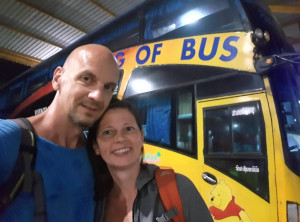 Im Nachtbus hatten wir eine ca. 1,70 × 1 Meter große Liegefläche für zwei Personen, auf der Kopfkissen und Decken bereit lagen. Für uns war es einigermaßen okay, aber wenn man sich diese Fläche mit einem Fremden teilen muss, ist es irgendwie doch etwas zu intim…