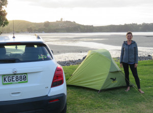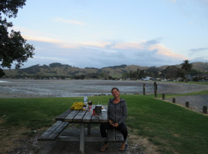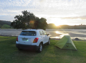 Prima, kurz vor Sonnenuntergang stand unser Zelt auf einem Premium Platz mit Meerblick. Am Strand gab es Picknickplätze und ein WC – und das ganze auch noch kostenlos. Am nächsten Morgen verabschiedeten wir uns von den anderen Campern und setzten unseren Weg nach Coromandel fort.
