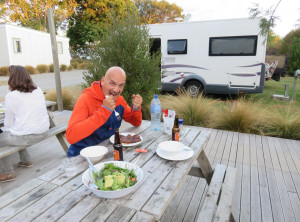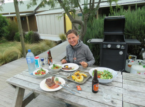 Zum ersten Mal seit unserer Ankunft in Neuseeland legten wir uns an diesem Abend leckere Steaks auf den BBQ und schlemmten, was das Zeug hielt. In dieser Nacht wurde es kalt – zum ersten Mal einstellige Temperaturen, darum verschwanden wir bald in unserem Zelt und kuschelten uns in unsere Schlafsäcke.