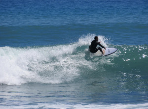 Unseren Mittagsstopp machten wir am Strand und beobachteten ein paar Surfer in den hohen Wellen. Als die Herren aus dem Wasser stiegen sahen wir, dass sie alle schon etwas älter sind, Respeckt. Wir spazierten am Wasser und hielten die Füße in das kalte Meer. Obwohl Markus mich gewarnt hatte, erwischte mich eine größere Welle und verpaßte mir einen nassen Hosenboden.