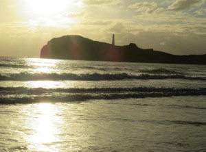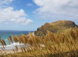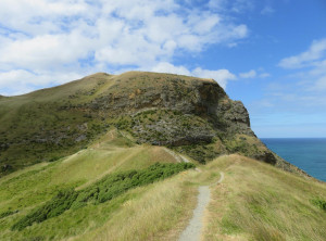 Am nächsten Morgen schien die Sonne vom fast wolkenlosen Himmel, obwohl Bewölkerung angesagt worden war. Umso besser, da wir zu Fuß eine kleine Runde zum steil über den Meer aufragenden Castle Rock und zum bekannten Leuchtturm vom Castlepoint machen wollten. Bei bestem Wetter ging es also steil den ca. 100 Meter hohen Berg hinauf und wir genossen den Rundumblick auf die wunderschöne zerklüftete Küste und auf den kleinen Ort.