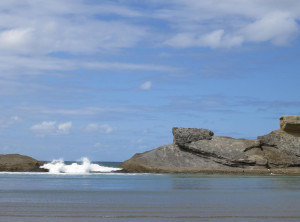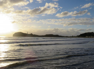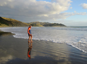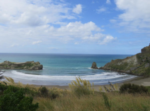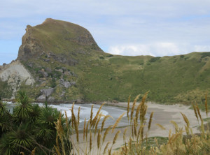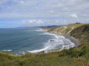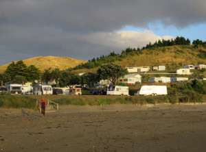 Wir kamen gegen 17 Uhr im abgeschiedenen und daher sehr ruhigen Castlepoint an. Der Ort gefiel uns auf Anhieb. Es gab einen langen Sandstrand, der beiderseits von Klippen begrenzt wurde und die wenigen Häuser zogen sich vom Strand einen Hügel hinauf. Nachdem es während der Fahrt mehrmals kräftig geregnet hatte, wurde das Wetter zum Abend hin besser und wir entschieden uns, auf dem direkt am Strand liegenden Campingplatz einzuchecken.