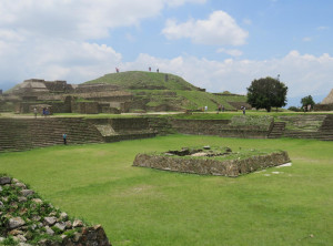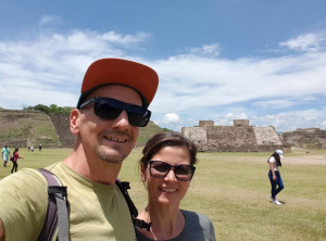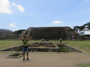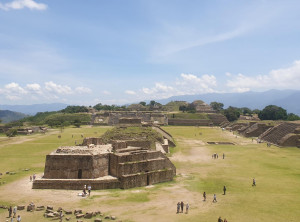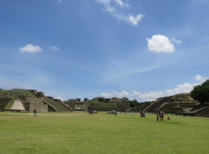 An unserem zweiten Tag in Oaxaca machten wir einen Ausflug nach Monte Albán, das ist eine alte Ruinenstadt, die ehemalige Hauptstadt der Zapoteken. Bevor die Spanier das Land eroberten lebten sie in der Gegend um Oaxca. Zwischen 300 und 900 n. Chr. hatten sie ihre Blütezeit und bauten beeindruckende Pyramiden, die erstaunlich gut erhalen sind. Die Pyramiden liegen 8 km entfernt und etwa 400 Höhenmeter oberhalb vom heutigen Stadtkern auf einem Berg.
