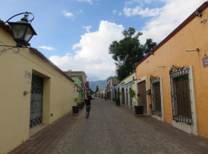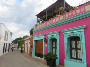 Schon beim Fußmarsch von Busbahnhof zu unserem Hostel fühlten wir uns wohl. Was uns schon in México City ist aufgefallen ist – die Mexikaner bauen scheinbar nicht in die Höhe sondern eher in die Breite, zeigte sich hier erneut. Viele bunte meist einstöckige maximal zweistöckige Häuser reihen sich aneinander und geben dem Stadtbild ein besonderes Flair.