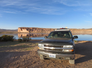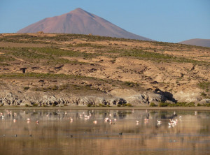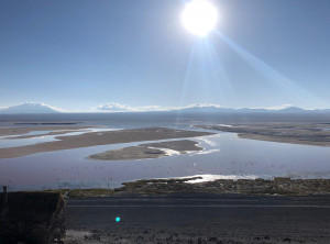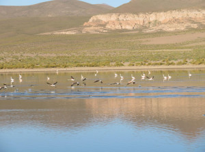 Am nächsten Morgen staunten wir nicht schlecht. Der See war voller Vögel, darunter hunderte Flamingos. Die Berge spiegelten sich auf der Wasseroberfläche, einfach schön und weit und breit kein Mensch. Wir spazierten etwas umher und machten viele Flamingo Fotos. Da es noch früh und etwas frisch war, fuhren wir erstmal ein Weilchen um machten später einen Stop und frühstückten gemütlich in der Sonne.