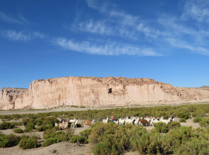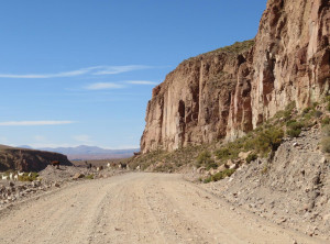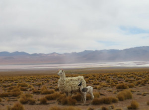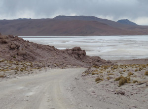 Etwa 45 Minuten später erreichten wir die bolivianische Grenze. Wir verschenken noch unsere letzten Cocablätter und stopften uns mit Obst voll. Frische Produkte darf man nicht nach Chile einfuhren und die Kontrollen sollen sehr genau sein. In einem staubigen Tal durch das der Wind pfiff wurden zuerst unsere Pässe und dann Jeffreys Dokumente geprüft, keine fünf Minuten später befanden wir uns im Niemandsland zwischen Chile und Bolivien – nun trennten uns noch ca. 5 Kilometer Schotterpiste von der chilenischen Grenze. Etwas wehmütig waren wir schon. Danke Bolivien, du hast uns mit deinen freundlichen Menschen der Gastfreundschaft und mit deiner einmaligen Natur mehr als verzaubert!