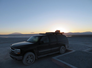 Wir fuhren bis zur Laguna Verde, ließen uns den Wind um die Ohren wehen und machten ein paar Bilder mit dem Vulkan, auf den wir steigen wollten, und entschieden uns dann schon am Abend nach Chile zu fahren.