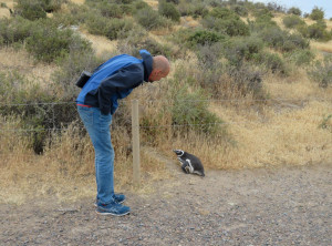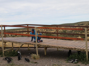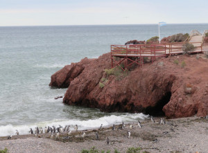 Nachdem wir die Valdés Halbinsel verließen, fuhren wir in Richtung Punta Tombo. Dort lebt eine sehr große Kolonie der Magellan-Pinguine. Es ist die größte Population außerhalb der Antarktis. Jedes Jahr sollen hier bis zu einer Millionen Pinguine brüten. Auf dem Weg passierten in Trelew eine riesige Statue eines Dinosauriers. Hier wurden vor einigen Jahren die Fosilien des größten bekannten Urzeittieres gefunden und dieses dann in Echtgröße nachgebildet. Mit dem Einbruch der Dunkelheit erreichten wir den Eingang des Nationalparks Punta Tombo und legten uns schlafen.