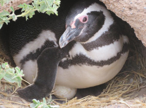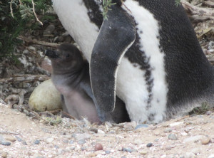 Die Tiere waren überhaupt nicht scheu und liefen wenige Meter an uns vorbei. Überall standen und lagen sie herum, viele in ihren Bruthöhlen. Wir waren genau zu der Zeit da, in der die Küken aus den Eier schlüpfen. In vielen Nestern sahen wir bereits die Kleinen, ein Elternteil wärmte sie und lag auf ihnen. Mit lautem Geschnatter verteidigten sie ihre Bruthöhlen gegen jeglichen Eindringling. Teilweise waren auch noch Eier zu sehen, bei einem konnten wir zuschauen, wie gerade ein Küken schlüpfte.