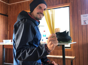 Wir erreichten nach etwas mehr als drei Stunden unser Ziel, checkten ein und schlugen unser Zelt auf. Der Campingplatz war besser ausgestattet als gedacht und wir konnten warm duschen. Es gab ein großes Zelt, in dem windgeschützt gekocht werden konnte und ein kleines Restaurant, in dem Getränke und Snacks angeboten wurden. Da das Wetter immer noch sehr gut war, kochten wir direkt am Zelt. Wir kämpften etwas mit dem kleinen Topf und den vielen Spaghetti, die in mehreren Chargen zubereitet wurden, dazu eine Käsesauce und fertig waren unsere Schlammnudeln.