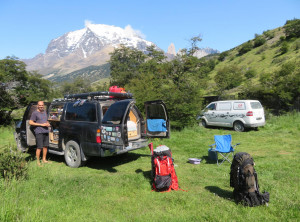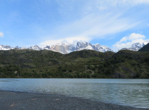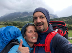 Wir erreichten den Campingplatz Cuernos, für den wir keine Reservierung hatten. Bei einer Pause in der warmen Campingküche stärkten wir uns mit warmem Tee und verschlangen unsere letzten Lebensmittel. Da wir nass waren und in Bewegung bleiben wollten, packten wir schnell wieder unsere Sachen zusammen und begaben uns auf die letzte Etappe. Noch 12 km bis zum Parkplatz, an dem Jeffrey auf uns wartete. An einem türkisblauen See ging es auf und ab. Es nieselte nun nur noch und wir schöpften Hoffnung, etwas zu trocknen. Tatsächlich stoppte der Regen zwischendurch mal für eine Stunde und unsere Klamotten trockneten an. Die Landschaft war wunderschön und zwischendurch erhaschten wir immer mal wieder einen Blick auf die wolkenverhangenen Berge. Gegen 16 Uhr erreichten wir unser Ziel – Yehaaaaa! Wir pellten uns aus den nassen Klamotten, nutzten die heisse Dusche des Campingplatzes und legten uns ins gemütliche Bett von Jeffrey. Unser Kühlschrank spendierte uns ein Bierchen. Unglaublich gemütlich! Für unsere Freunde der Wanderung stand nun noch das Finale auf dem Programm, der Aufstieg zu den Torres, diese schöne Wanderung hatten wir ja schon am ersten Tag gemacht.