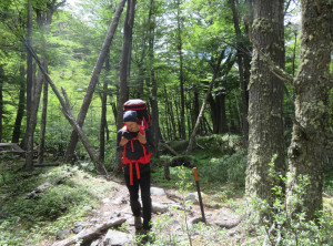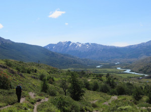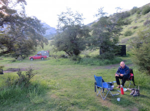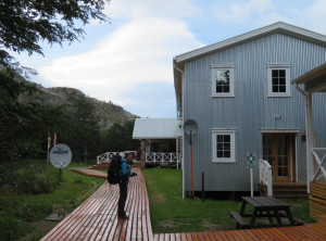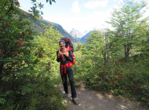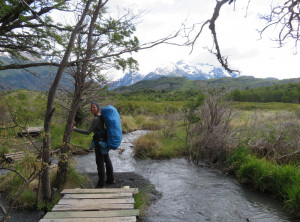Den ersten Tag unserer mehrtägigen “O” Wanderung – eine Runde mit Sack und Pack um die Torres gingen wir ganz entspannt an. Erstmal schliefen wir aus und frühstückten gemütlich bei Sonnenschein mit Bergblick. Wir bekamen sogar Besuch von einem neugierigen Fuchs, der wohl wusste, dass da wo Menschen sind auch Nahrung ist. Er huschte direkt an uns vorbei. Nach dem Frühstück hieß es packen. Die nächsten 5 Nächte wollten wir im Zelt verbringen und uns selber versorgen. Wir türmten alles, was wir mitnehmen wollten, auf und gingen nochmals unseren Speiseplan durch. Müsli, Spaghetti, Tortellini, Thunfisch, Eier, Kartoffelbrei, ein Marzipanbrot, Zwieback, Kekse, Milchpulver, Kaffee, Tee und und und landete auf dem Stapel. Wir verstauten alles in unseren Rucksäcken und waren gegen 12 Uhr startklar. Nun hatten wir noch etwas Zeit und snackten noch ein paar Reste vom Vortag. Nach dem Mittagessen sattelten wir auf und machten uns auf die erste Etappe der Umrundung der Torres de Paine. Das Ziel der Campingplatz Serón war 13 km und 250 Höhenmeter entfernt. Besonders Markus, der das Zelt und den Löwenanteil unserer Lebensmittel im Rucksack hatte, musste schwer tragen. Trotz der Last auf dem Rücken genossen wir die erste Etappe, die uns leicht bergauf über saftige Wiesen führte. Auf einer Koppel fanden wir ein Hufeisen, na also dieser Ausflug versprach einmalig zu werden.