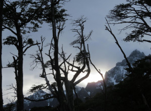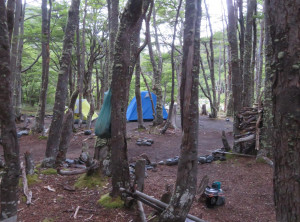 Am Morgen erwachten wir bei Sonnenschein mit einem super Bergblick, wir trällerten ein Geburtstagsständchen für meine Schwester Kristin, welches sie erst Tage später erreichen würde, denn Empfang hatte man hier nicht. An diesem Tag hatten wir eine recht kurze Etappe vor uns. Wir wanderten durch einen märchenhaften Wald, überquerten zahlreiche Flüsse und passierten einen Gletscher. Unweit des ewigen Eises lag auch schon der nächste Zeltplatz Los Perros, hier campten wir im Wald. Dies sollte unsere kälteste und kürzeste Nacht werden. Ein schönes Holzhaus bildete den Mittelpunkt des Platzes, hier wurde gekocht und gequatscht. Es gab auch Duschen, allerdings mit kaltem Wasser- wir verzichteten an diesem Tag aufs Duschen. Schon bald nach dem Abendessen kuschelten wir uns ins Zelt. Am nächsten Tag wollten wir um 7 Uhr aufbrechen, es lag die Passüberquerung und damit die anspruchsvollste Wanderung der Runde vor uns. Trotz Kälte und etwas Regen schliefen wir gut.