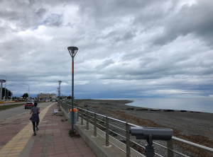 Etwa 50 km später überquerten wir die Grenze von Chile nach Argentinien. Wieder mussten wir aufpassen, keine frischen Lebensmittel wir Obst, Gemüse, Käse und Eier an Bord zu haben. Diesmal wurden wir nicht gefilzt und fuhren gut gelaunt schon nach etwa 15 min auf argentinischem Boden weiter. In der nächsten größeren Stadt, Rio Grande machten wir Station. Wir stockten unsere Lebensmittelvorrate auf und gönnten Jeff mal eine Dusche. Wir joggten eine Runde an der Atlantikküste und sahen uns etwas um. An der Tankstelle füllten wir unseren Tank und genehmigten uns eine Dusche. Wir fuhren noch ein paar Kilometer raus aus der Stadt und stellten uns an einen schönen Platz am Wasser. Ein Expeditionsfahrzeug war schon da, es handelte sich um ein umgebauten österreichisches Militär-LKW mit Hildesheimer Kennzeichen. Am nächsten Tag unterhielten wir uns dem Rentnerpärchen, die mit diesem Fahrzeug die Welt erkunden. Wir frühstückten in der Sonne und setzten unsere Fahrt in Richtung Süden fort.