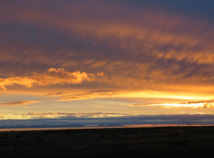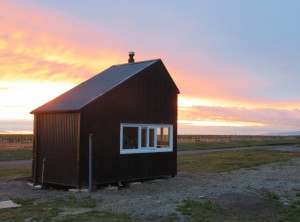 Wir suchten uns einen Platz zum Übernachten, doch so richtig wollte sich keiner finden. Beim dritten Anlauf hatten wir Glück. Wir blieben geschützt von ein paar Bäumen neben einem Refugio, welches besonders Radfahrern Schutz bieten soll stehen. Das Refugio war ein nagelneues kleines Holzhaus mit Tisch und Bank, einem Ofen und einem Hochbett. Am Platz trafen wir zwei Graufüchse, die auf Nahrung hofften. Außerdem waren in dieser Gegend viele Guanakos unterwegs. Wir machten uns einen Tee und betrachteten die untergehende Sonne. Die Sommertage in Feuerland sind lang. Die Sonne ging nach 22 Uhr unter und schon vor 5 Uhr wieder auf.