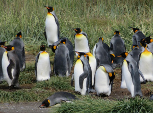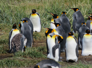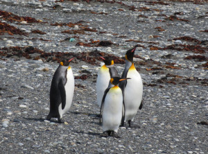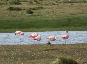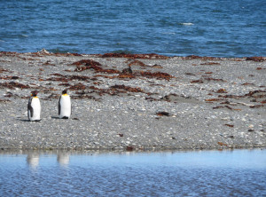 In der Nacht regnete es heftig, davon bekamen wir in unserem gemütlichen Auto jedoch kaum etwas mit. Vorbei an einem See, in dem Flamingos standen, ging es zu den Königspinguinen. Es handelt sich um die zweitgrößte Pinguinart der Welt. Die lustigen Kerlchen sind bis 110 cm groß und im Gefieder tragen sie einen schönen goldgelben Ring am Hals. Hier in Pingüino Rey Leben etwa 90 Pinguine, die aus der Ferne betrachtet werden können. Am Eingang des Parks erfuhren wir, dass die Kolonie schrumpft. Die eingeschleppten Feinde der Graufuchs und der Marder, die einst hier ausgewildert und wegen ihres Fells gejagt wurden, fressen die Eier der Pinguine und machen es nahezu unmöglich, dass die Tiere sich vermehren. Ein Pinguinpaar benötigt zur Aufzucht eines Jungtieres 16 Monate und nur in jedem zweiten Jahr legt eine Pinguindame neue Eier. An der Aufzucht sind beide Elternteile gleichermaßen beteiligt. Stößt einem Elternteil etwas zu, kann der Nachwuchs nicht durchgebracht werden. Wir bestaunten eine Weile die stolzen Tiere.