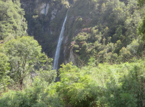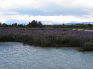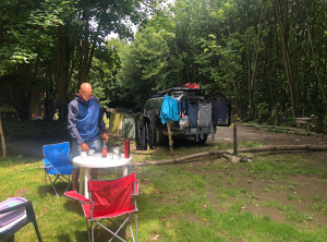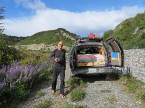 Der erste Blick an diesem Morgen fiel auf das lila Lupinenfeld vor unserem Heckfenster, so schön. Wir frühstückten draußen, obwohl es mit 12 Grad kühl war und es immer wieder etwas tröpfelte. Der Himmel zog sich langsam zu. Wir wollten an diesem zweiten Weihnachtsfeiertag eine gemütliche 16 km Wanderung ohne Steigung machen. Die Tour versprach eine super Aussicht, leider hatten wir die 15 km Anreise über einen schmalen holprigen Weg unterschätzt. Wir führten wilde Diskussionen, ob wir weiter fahren oder umkehren sollten. Jeffrey kämpfte sich tapfer durch 11 km bis zu einer Brücke, über die wir uns dann doch nicht trauten. Einige alte Bahnschwellen und kein Geländer. Uns blieb der Fußweg, Jeffrey liessen wir auf der anderen Flussseite zurück. Nach vier Kilometern erreichten wir den eigentlichen Start der Wanderung. Der Himmel war grau in grau und die Aussicht, mmh sagen wir mal wild. Nach 1,5 h kehrten wir um und waren noch pünktlich vor der Regenfront am Auto. Die nächsten 3 h regnete es, was das Zeug hält.